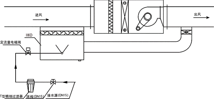 工作原理: 全空氣型戶式中央空調(diào)室內(nèi)機(靜壓式管道機)為了降低噪音,風(fēng)壓一般都比較小,如在出風(fēng)口上設(shè)置濕膜式加濕器對戶式中央空調(diào)系統(tǒng)的送風(fēng)量有較大影響,一般均采用BYPASS旁通方式加濕或采用電加濕。旁通加濕的工作原理是將經(jīng)過空調(diào)盤管加熱后的空氣一部分從旁通風(fēng)管經(jīng)過噴霧加濕段,利用送回風(fēng)口的壓力差形成旁通空氣循環(huán),實現(xiàn)加濕目的。
