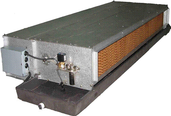 工作原理: 經過電磁閥的潔凈自來水通過供水管路送到濕膜頂部布水器,水在重力作用下沿濕膜表面往下流,布水器確保水均勻分配到濕膜材料上,水從濕膜材料頂部向下滲透,同時被濕膜材料吸收,形成均勻的水膜;當干燥的空氣通過加濕器時,其濕度增加,溫度下降。從而達到加濕目的,流到接水盤中的水通過排水彎管排到下水管道中。適用于別墅、賓館、辦公室等加裝風機盤管的應用場所,特別適用于與風機盤管等空調末端產品配套。